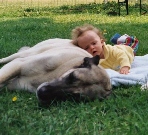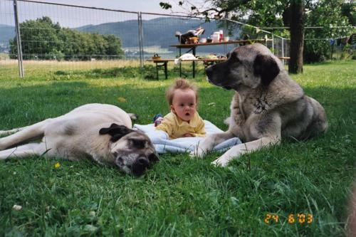 Amelie mit zwei großen Bewachern